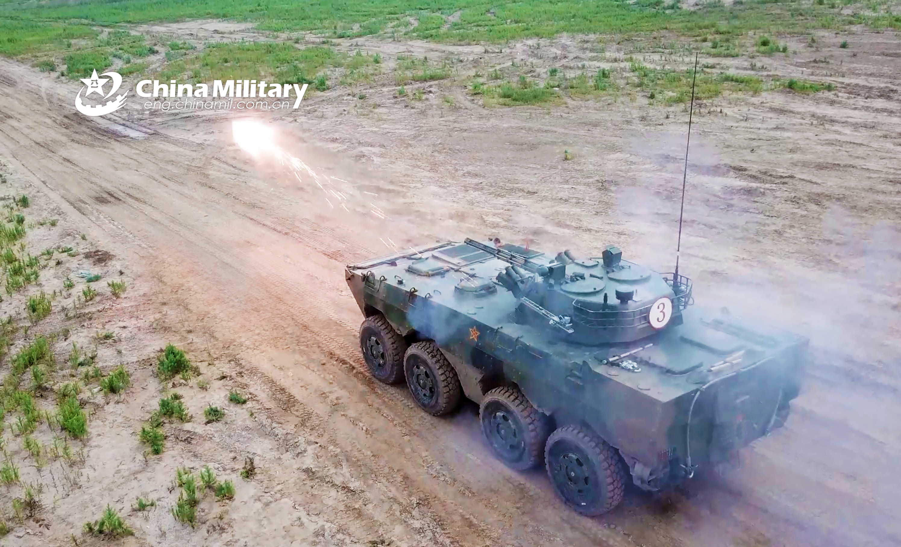 An anti-tank missile is launched from an armored vehicle attached to a brigade of Marine Corps under the PLA Navy at a mock enemy target during a recent live-fire training exercise. (eng.chinamil.com.cn/Photo by Shang Wenbin)
