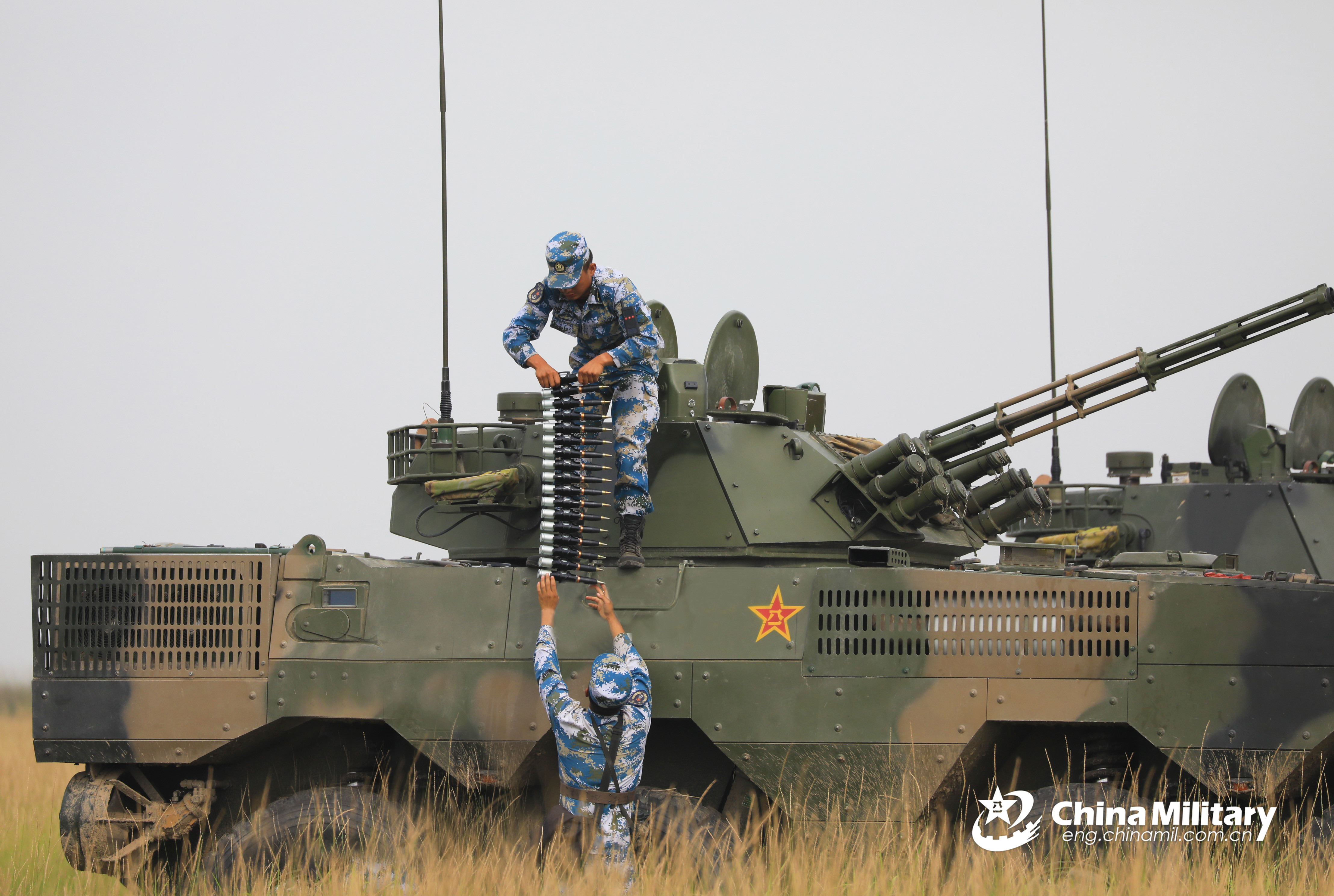 Marines assigned to a brigade of Marine Corps under the PLA Navy check and prepare ammunitions before loading prior to a recent live-fire training exercise. (eng.chinamil.com.cn/Photo by Shang Wenbin)