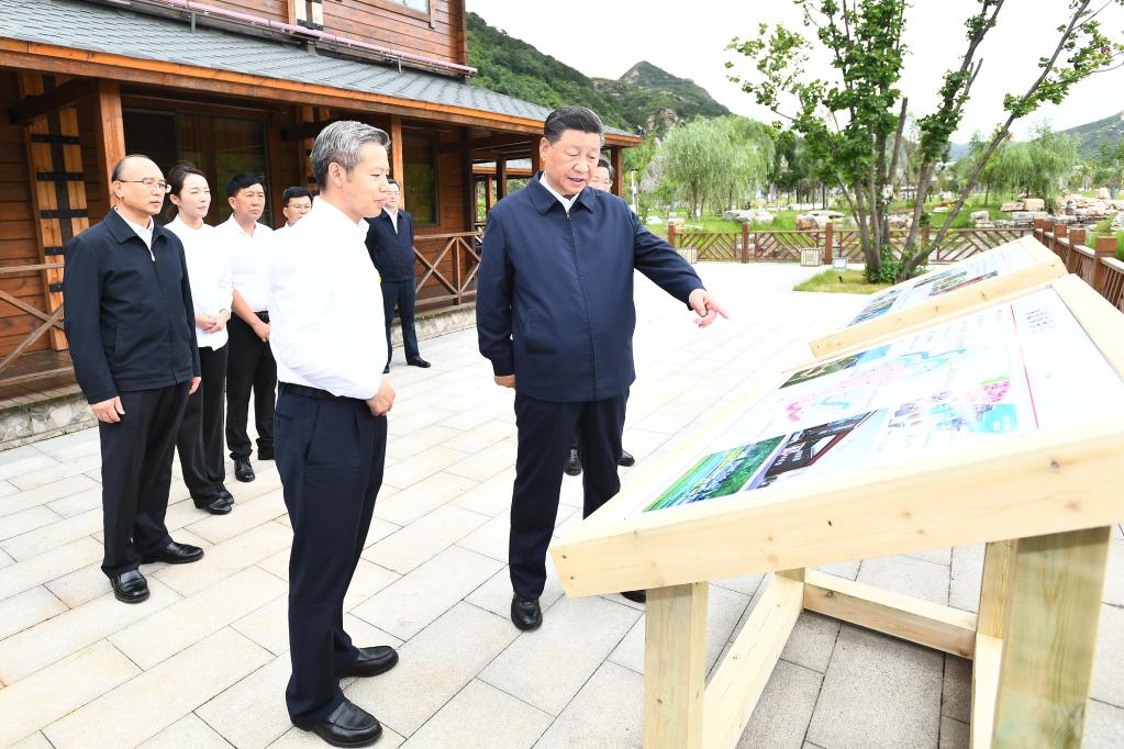 Chinese President Xi Jinping, also general secretary of the Communist Party of China Central Committee and chairman of the Central Military Commission, visits Daguikou village in Chengde, north China's Hebei Province, Aug. 24, 2021. Xi made an inspection tour of Chengde City in Hebei Province from Monday to Tuesday. (Xinhua/Xie Huanchi)