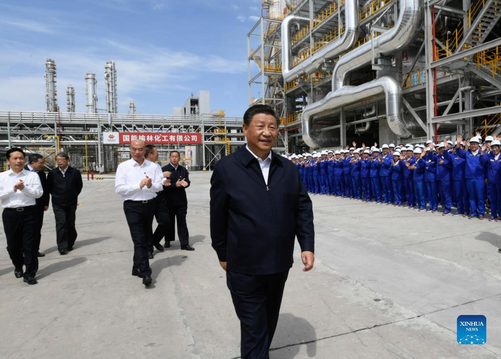 Chinese President Xi Jinping, also general secretary of the Communist Party of China Central Committee and chairman of the Central Military Commission, visits a chemical company in Yulin City, northwest China's Shaanxi Province, Sept. 13, 2021, learning about the progress in making comprehensive use of coal amid circular economy. (Xinhua/Li Xueren)