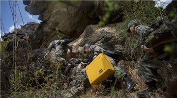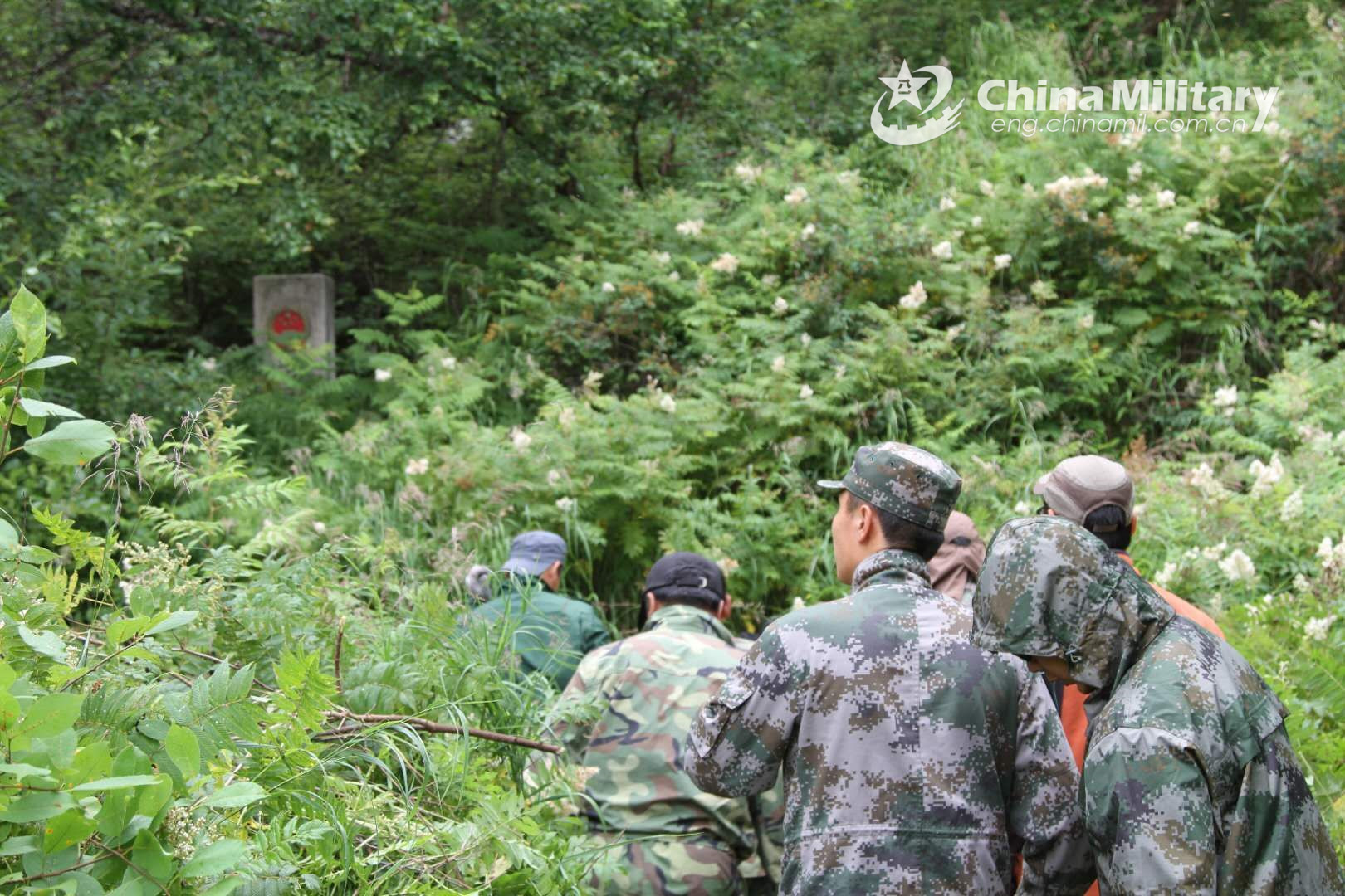 Soldiers assigned to a unit with the PLA Strategic Support Force march to the China-Russia boundary tablet during a recent border patrol mission. (eng.chinamil.com.cn/Photo by Hao Pengcheng and Xia Shaoxiong)