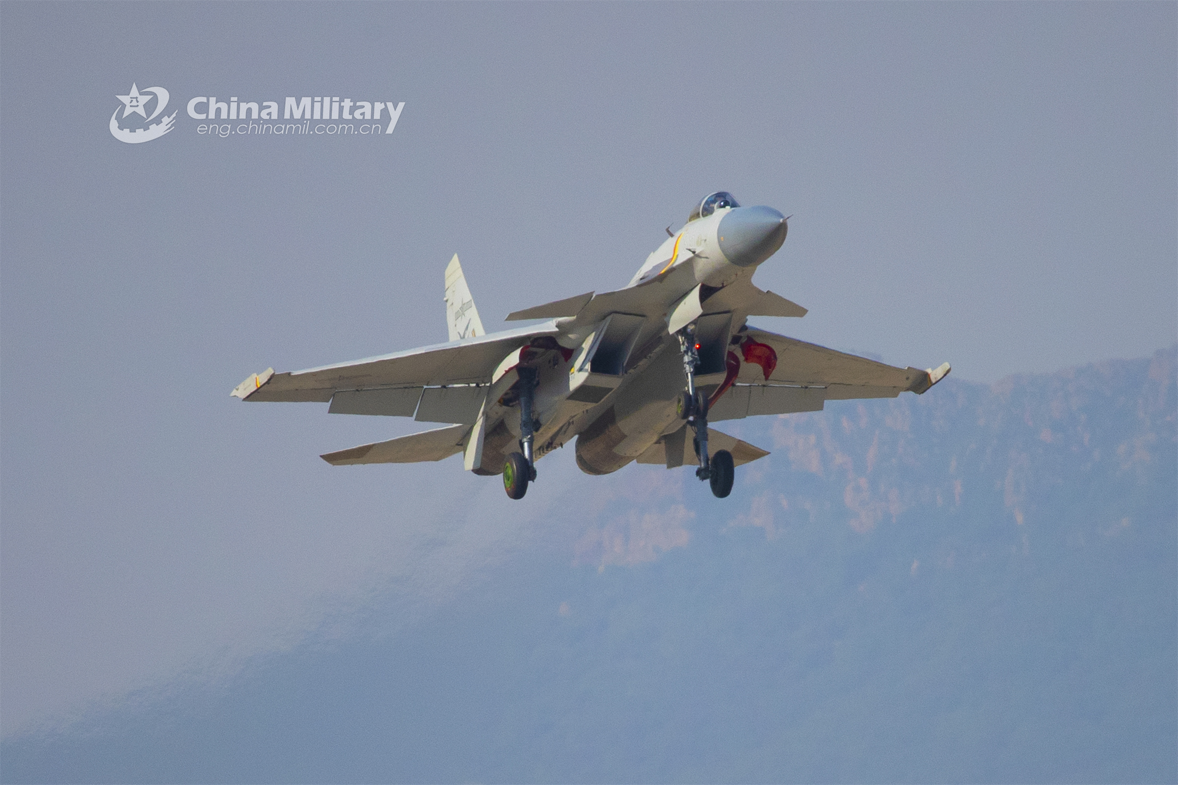 A fighter jet attached to a base under the PLA Naval Aviation University takes off for a recent flight training exercise. (eng.chinamil.com.cn/Photo by Jiang Tao)