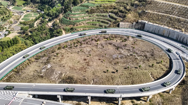 Armored vehicles attached to a brigade under the PLA 75th Group Army speed along an intercity highway during a long-distance maneuver training exercise in early February, 2024. (eng.chinamil.com.cn/Photo by Liu Junlei)
