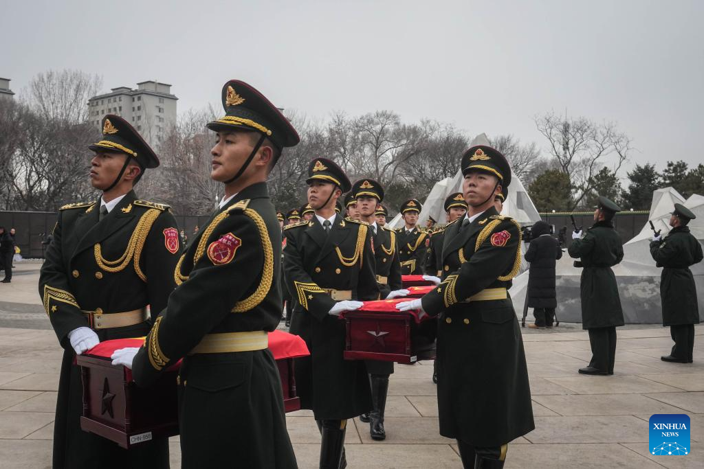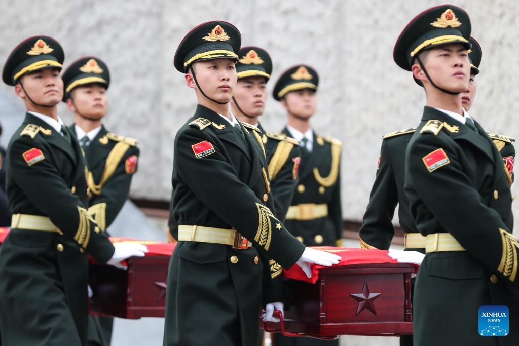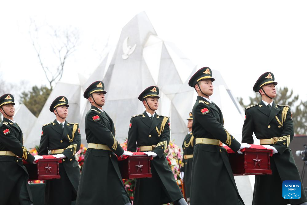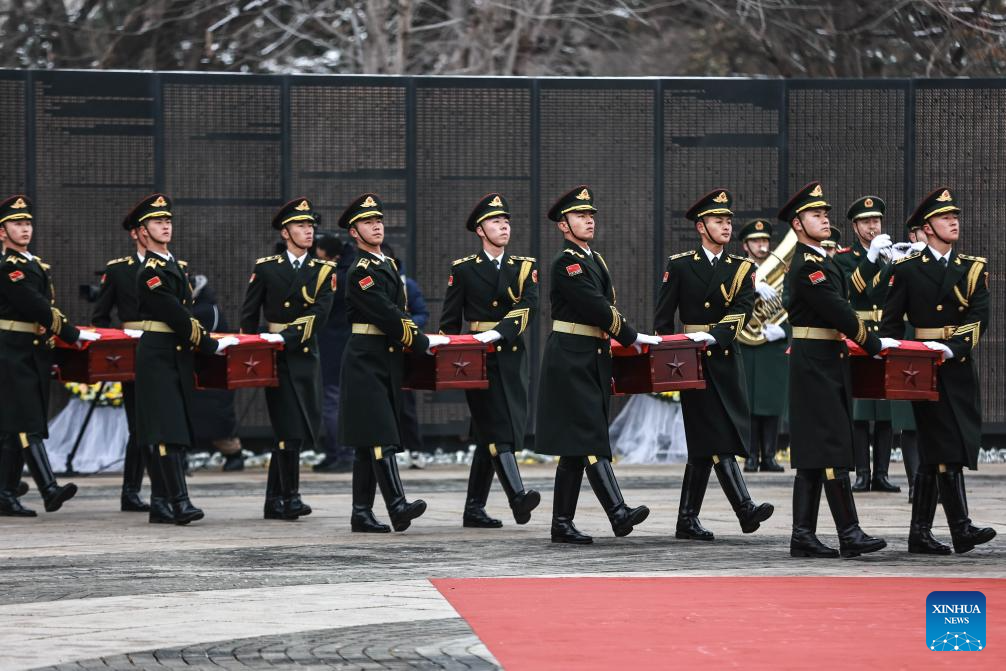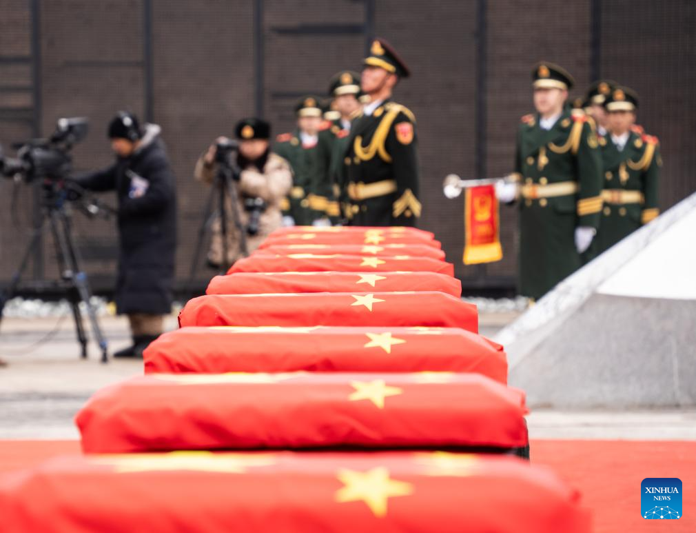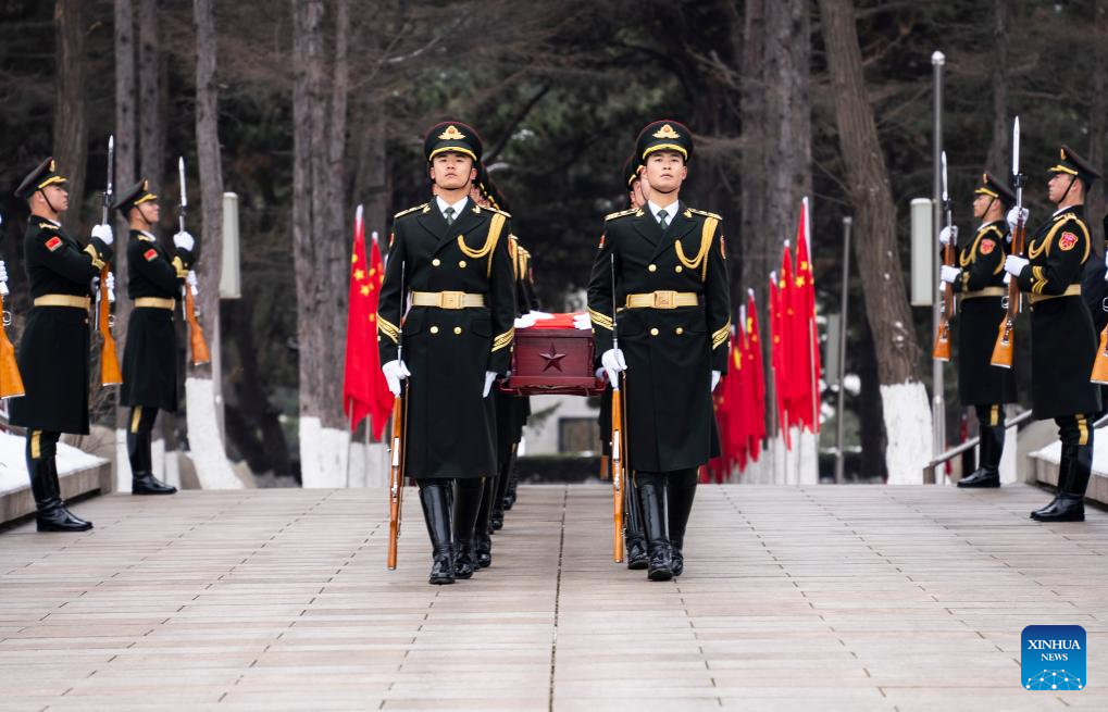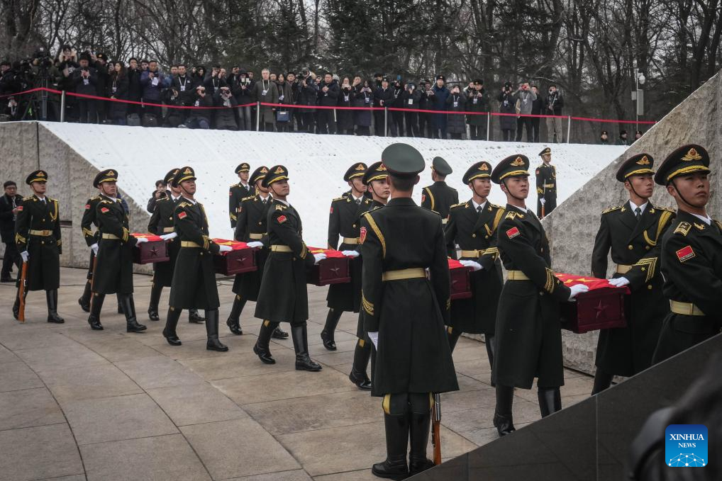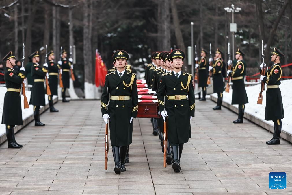 SHENYANG, Nov. 29 (Xinhua) -- The remains of 43 Chinese People's Volunteers (CPV) soldiers who lost their lives during the War to Resist U.S. Aggression and Aid Korea (1950-1953) were laid to rest on Friday in Shenyang, capital of northeast China's Liaoning Province.