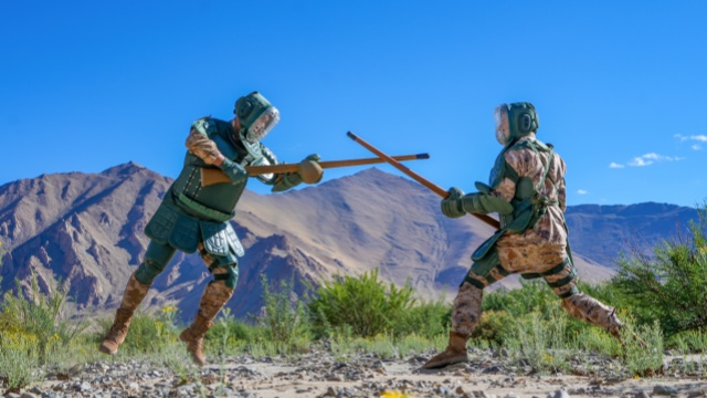 Soldiers assigned to a regiment under the Chinese PLA Army practice bayonet fighting skills in early September, 2025. (eng.chinamil.com.cn/Photo by Jasur Hayrat)