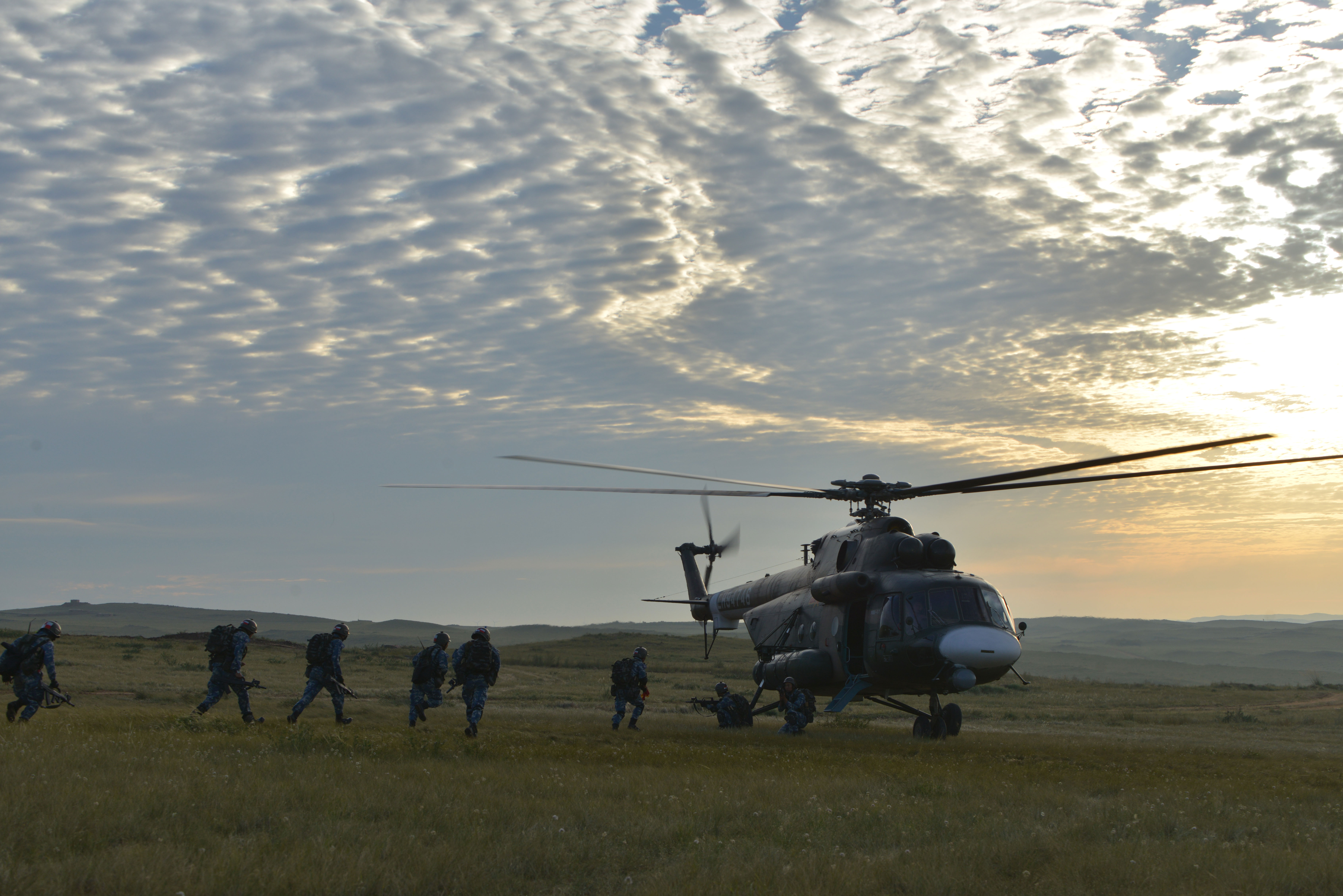 Soldiers assigned to a combined brigade with the 81st Group Army under the PLA Central Theater Command queue to board a transport helicopter after completing an assault mission during an actual confrontation training exercise. (eng.chinamil.com.cn/Photo by Lu Xuequan)