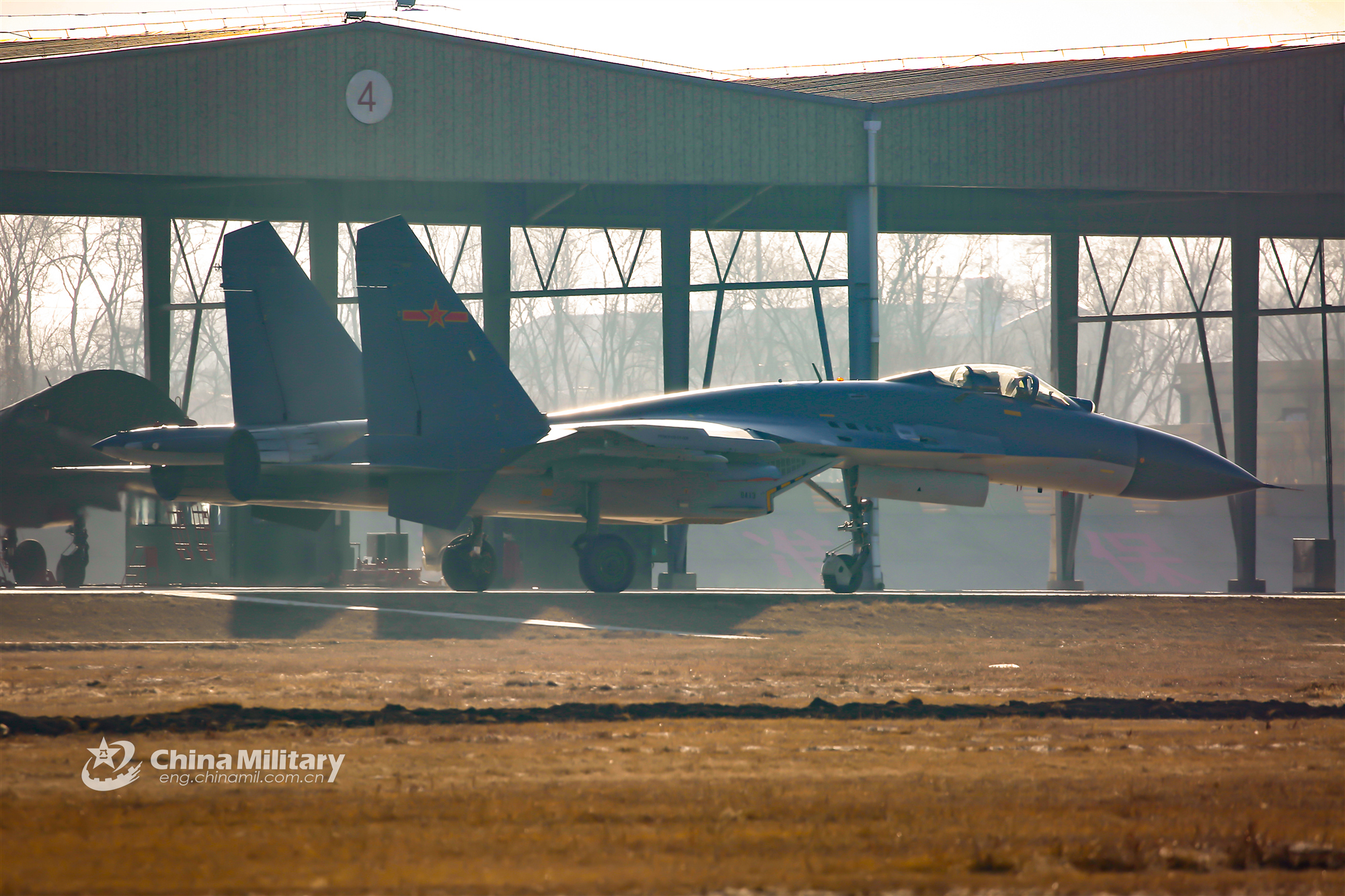 A J-11 fighter jet attached to an aviation brigade of the air force under the PLA Northern Theater Command taxies out of its aircraft shelter onto the runway before takeoff for a routine patrol mission on January 24, 2020. (eng.chinamil.com.cn/Photo by Yao Bo)