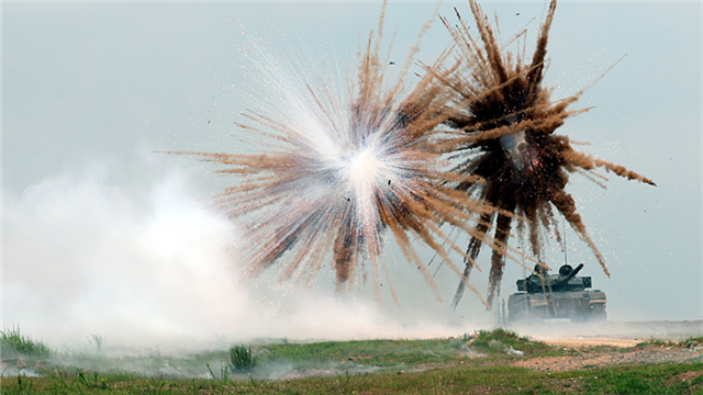 Armored vehicles attached to a combined arms brigade under the PLA 72nd Group Army fire multi-type smoke bombs as a concealment during a live-fire training exercise on July 7, 2020. (eng.chinamil.com.cn/Photo by Zhang Wenju)