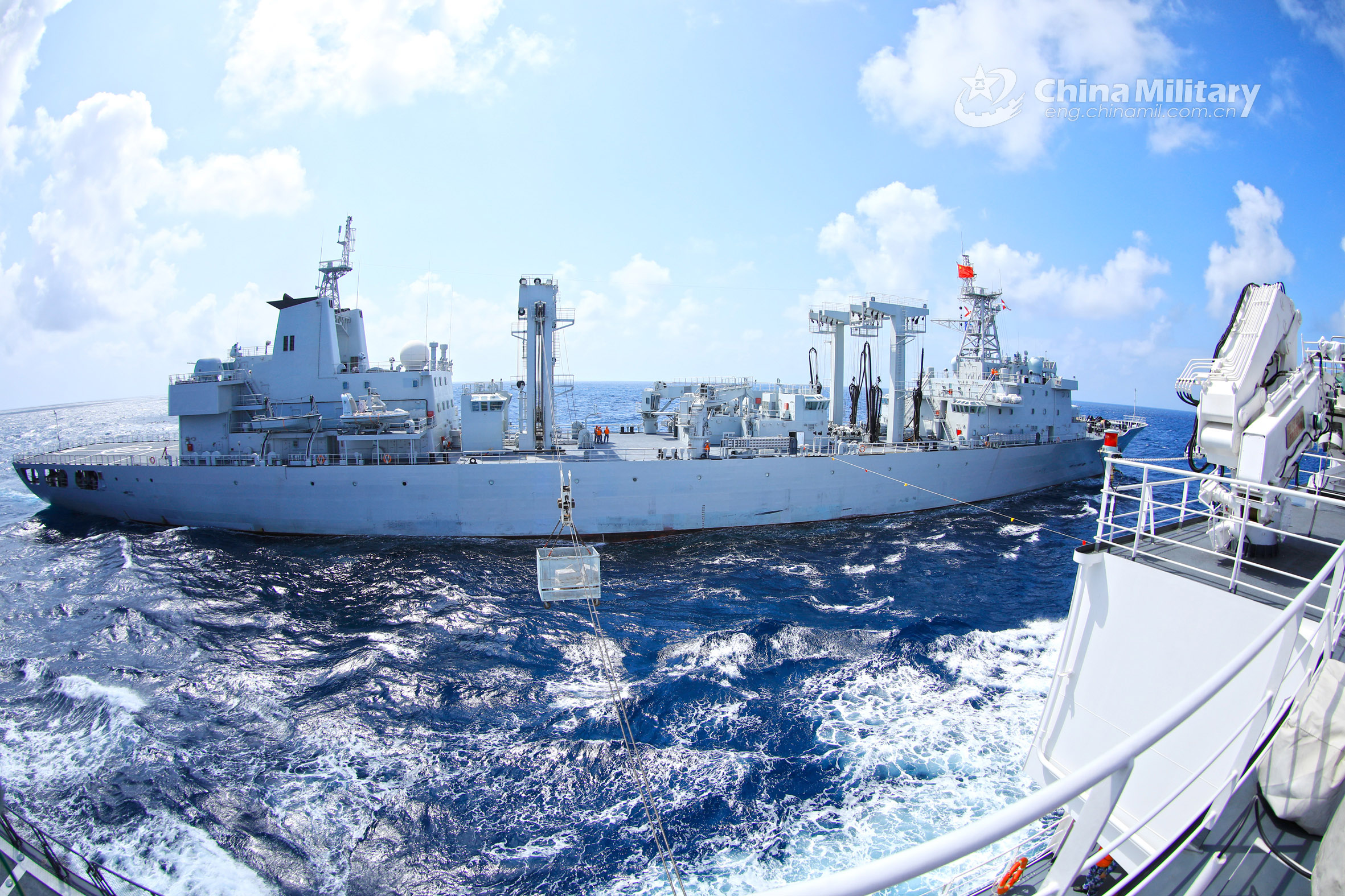 Vessels attached to a naval base under the PLA Southern Theater Command perform alongside dry cargo replenishment during a replenishment-at-sea training exercise in mid- April, 2021. (eng.chinamil.com.cn/Photo by Xue Chengqing)