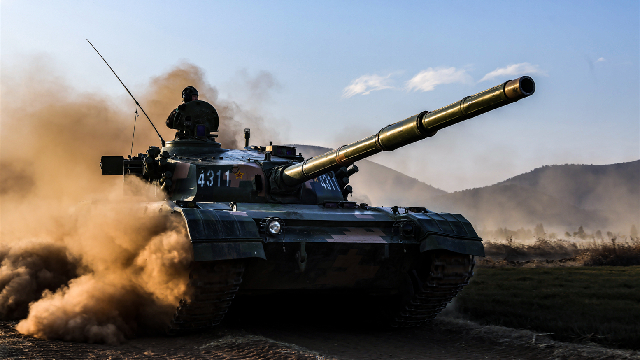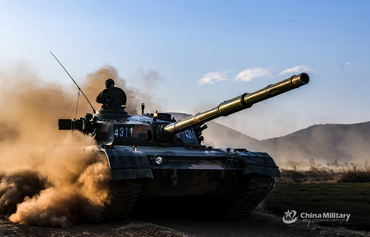 A main battle tank attached to a brigade under the PLA 71st Group Army rumbles forward during a round-the-clock live-fire training exercise in late-February, 2022. (eng.chinamil.com.cn/Photo by Lin Min)