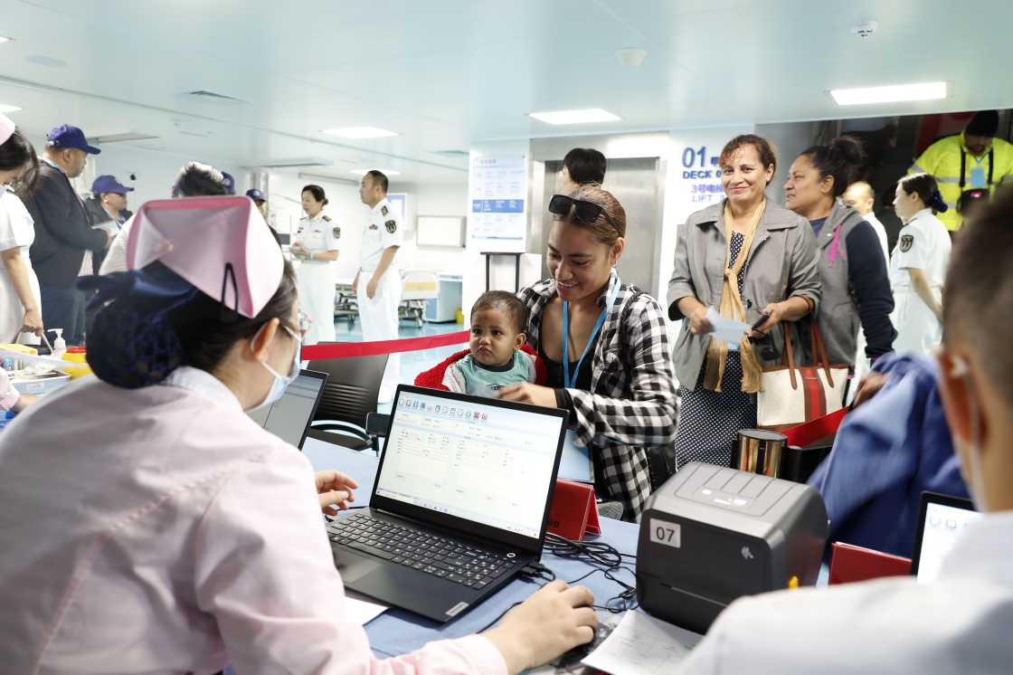 During the seven-day medical service, Peace Ark served 6,895 locals and overseas Chinese, with 39 operations completed. The number of treatment and operation cases via the main platform of the hospital ship per day has set the highest record since the Harmonious Mission 2023.