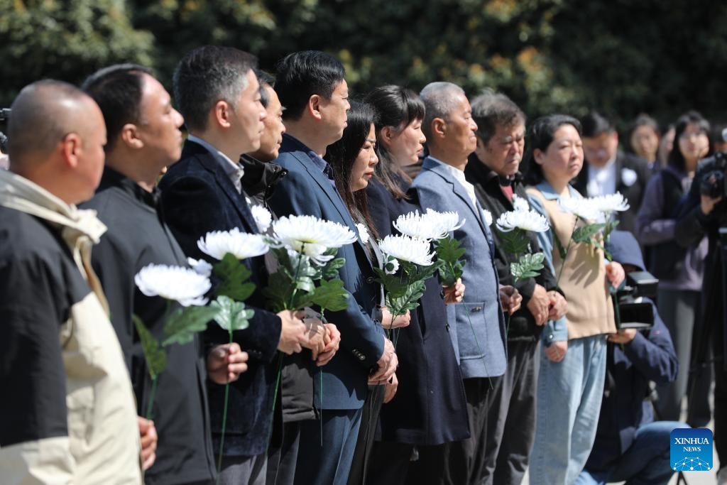People from all walks of life attend a ceremony honoring anti-Japanese aviation heroes at the Nanjing Memorial Cemetery to the Anti-Japanese Aviator Martyrs in Nanjing, east China's Jiangsu Province, April 3, 2025.