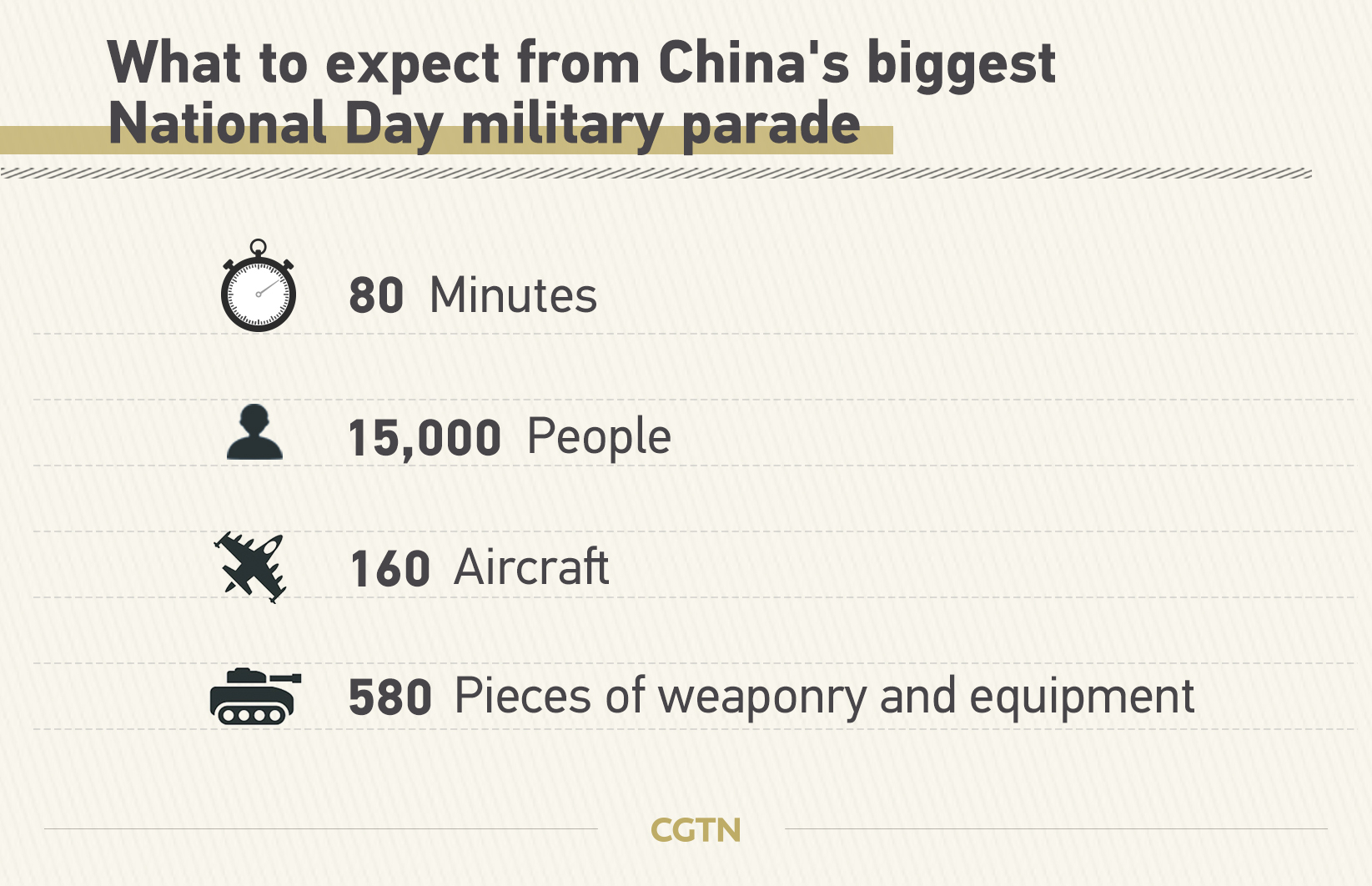 The 80-minute military parade, which will highlight China's military advances over the past 70 years, will be the biggest in recent years, according to Major General Cai Zhijun, deputy director of the Leading Group Office of Military Parade and deputy director general of the Operation Bureau of the Joint Staff Department at the Central Military Commission (CMC).