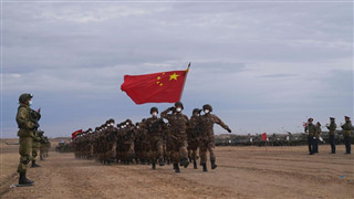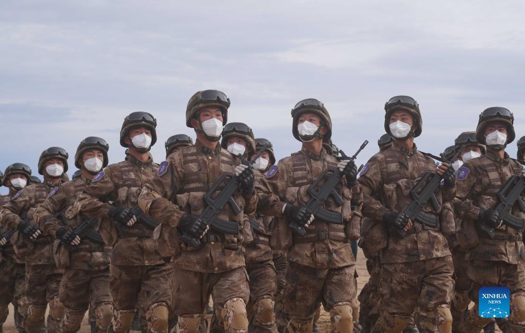 Chinese troops participate in the closing ceremony of the "Peace Mission 2021" counter-terrorism military drill of the Shanghai Cooperation Organization (SCO) member states, at the Donguz training range in Russia's Orenburg Region on Sept. 24, 2021. The "Peace Mission 2021" counter-terrorism military drill of the Shanghai Cooperation Organization (SCO) member states wrapped up on Friday in Russia. (Xinhua/Mei Shixiong)